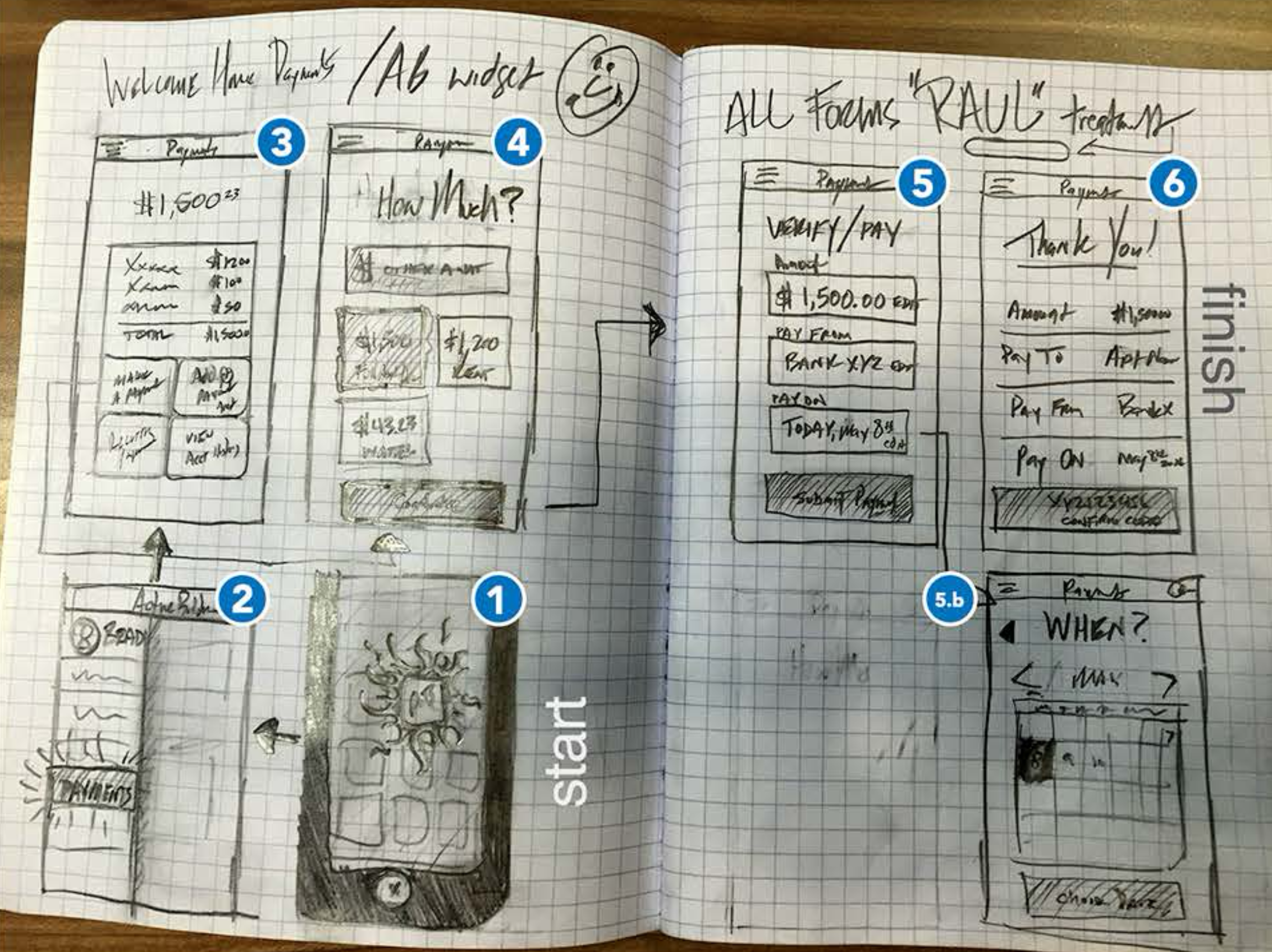 • Start Sketches, Whiteboarding & LoFi Prototypes